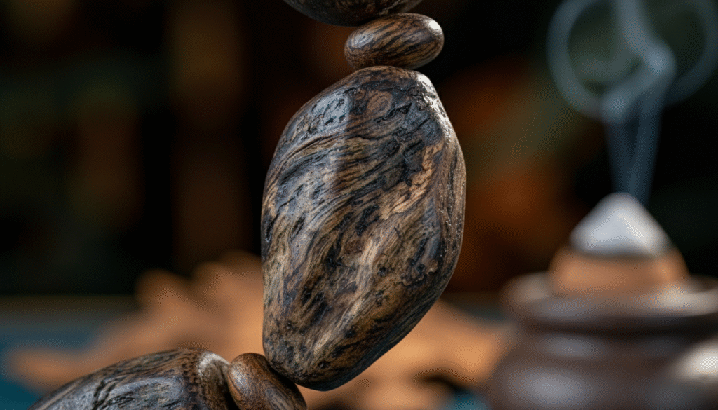 A.Rarity is valued, but uniqueness is revered. Burls are healing tissues formed under lightning strikes, wind damage, or insect infestations, with an occurrence rate of less than one in ten thousand. It breaks the standard straight grain of agarwood to provide irreproducible artistic textures. Furthermore, because these areas are where the tree’s defense mechanisms are most concentrated, the resin density is exceptionally high. Every burl bead is a miracle of natural chance and a unique item that cannot be mass-produced.
