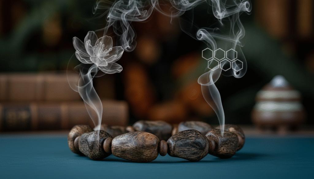A.Remember three words: Sticky, Soft, and Curling. Ordinary agarwood is hard, but aged material with Kynam traits has such high resin content that the wood fibers soften. Visually, the surface has a waxy appearance where resin seems to seep out. Tactilely, it has a slight elasticity when pressed and a noticeable ‘sticky resistance’ during handling. If shaved with a blade (though not recommended), it will produce curling resin rolls rather than wood chips. This is the ultimate expression of resin maturation.