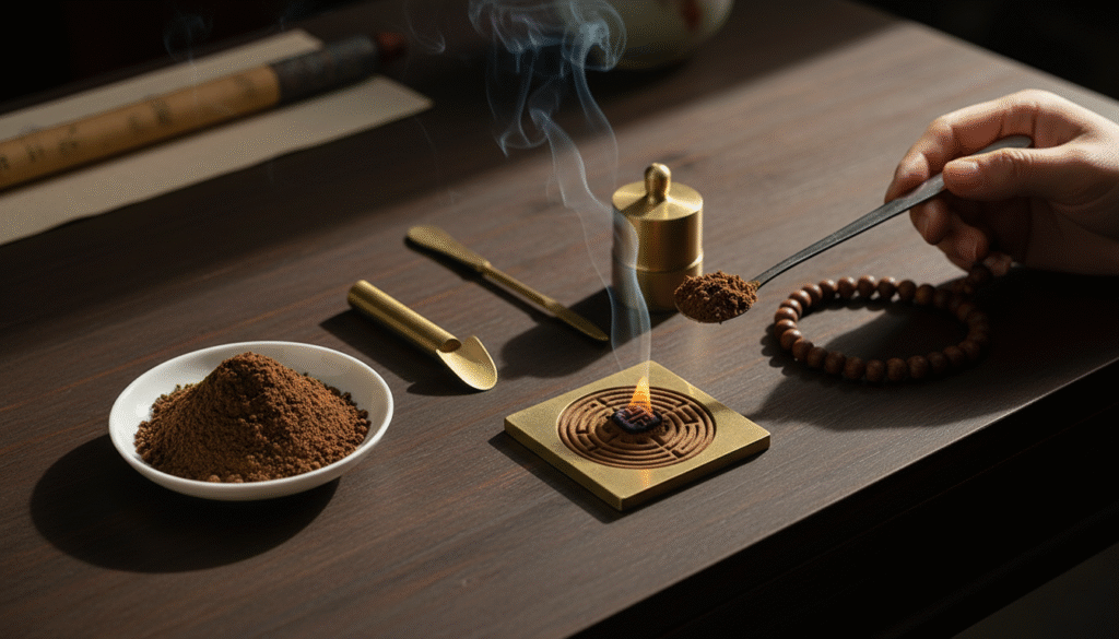 Its extremely fine grind (100+ mesh) gives it high versatility. It is not only a ‘zero-failure’ choice for making incense seals but also a perfect match for electronic burners. Take 0.5 grams of powder and slowly roast it at a constant temperature; there is no smoke or fire, only the circulation of scent—this is the modern version of ‘indirect incense burning’ championed by Song Dynasty scholars. Alternatively, you can try hand-rolling it into cone incense to feel the process of the powder taking shape in your palm.