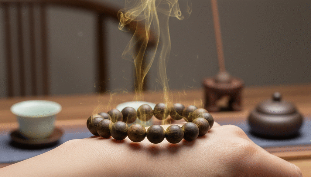 Beyond visual “life,” the biggest advantage of Live Knot Kynam is its scent explosiveness. Because it retains the tree’s active oil, this bracelet—note, without any hand-warmth heating—releases a highly penetrative cool air. This coolness is not the pungency of mint, but a crispness that hits the crown of the head. Following closely is a rich honeyed sweetness and a unique floral fragrance; this layering is incomparable to many soil-buried Ripe Knots, which often require heating to release subtle aromas. When wearing it, you feel the scent is “projected” rather than “wafted.” This is why domestic Chinese Kynam (especially from Guangdong and Hainan) is world-class: dominant, direct, and with a long-lasting sweet aftertaste.