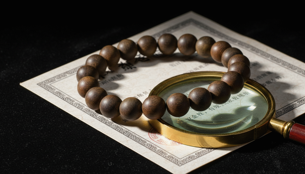 With decades in agarwood export, I have seen countless “fake at first sight” stories and handled many fine pieces. But today, the Chinese Black Oil Kynam bracelet on my desk forces me to take out my 60x magnifying glass to discuss a crucial but often ignored topic: the microscopic battle between “Live Knots” and “Ripe Knots.” In this industry, many only talk about “sinking,” but do not understand oil activity. This bracelet is more than a sealed fragment of time; it is a medal of the tree’s fierce struggle against fungi at the peak of its vitality. Today, I will not share ethereal legends, only visual evidence and olfactory experiences to show you this “active black oil masterpiece” that may soon vanish.