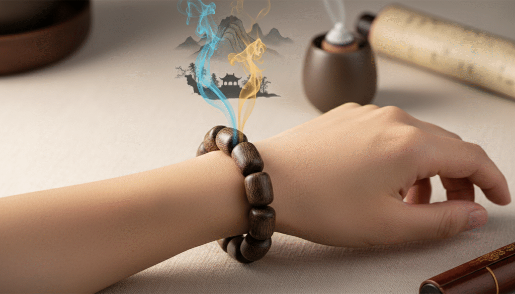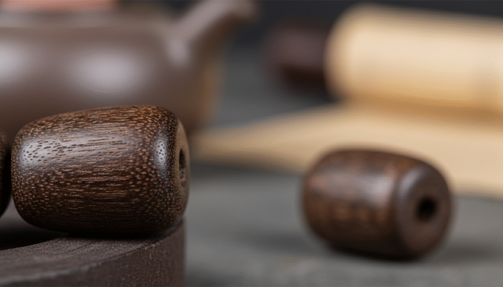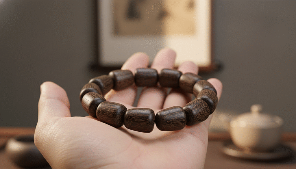 The reason Chinese Agarwood stands at the top of the hierarchy is entirely due to its “Qi” (scent energy). After wearing these barrel beads for a moment, catalyzed by body temperature, a highly penetrating “coolness” hits the nasal cavity first—a unique characteristic of Lingnan-system agarwood, making you feel as if you are in an ancient mountain temple after rain. This is followed by threads of honeyed sweetness, warm but not cloying, with a hint of primitive medicinal fragrance in the tail note. This layer of complexity is incomparable to the singular intensity of Southeast Asian agarwood. It allows you to calm down instantly in a restless city; this is what the ancients called the “Scent of a Peaceful Mind.” Every deep breath is a dialogue across time with an unpolluted era.