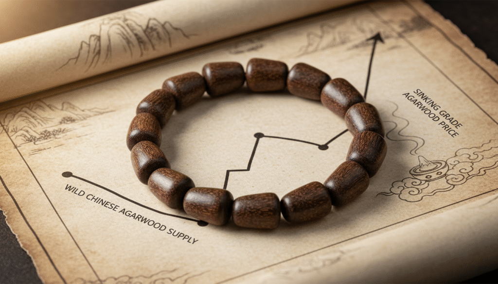 Sitting alone late at night, as I play with this 11-gram string of Chinese Agarwood barrel beads, the coolness from my fingertips brings back memories of a chance encounter in a mottled old house in Lingnan ten years ago. An old incense farmer in his seventies tremblingly took out a dust-covered “black lump” from an iron box under his bed. It was a treasured old material he was only willing to sell to pay for his grandson’s tuition. He said, “This is Tu-Chen (soil-buried agarwood); it has slept underground for decades, absorbing the earth’s essence.” Today, that seemingly unremarkable piece of wood has been meticulously crafted into this unique masterpiece. There are many products on the market claiming to be “Sinking-Grade Chinese Agarwood,” but those that truly sink instantly and are as oily as jade, like this string, are few and far between. Today, I won’t bore you with dry parameters; I want to use these beads, which carry a heavy story, to show you the true “Soul of National Fragrance” and why they have become a hard currency that transcends economic cycles.