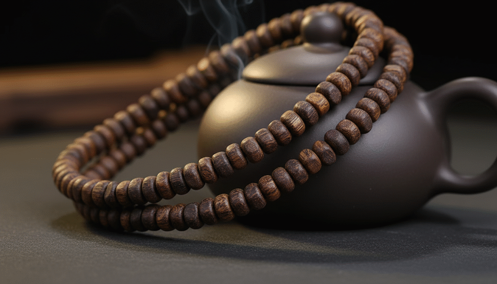Through a macro lens, you no longer see wood grain, but an ink-wash landscape painting. The high-density resin permeates every wood fiber like spilled ink, presenting a deep black-brown hue. This “black” is not the dead black of withered wood, but a lustrous, breathing color of life. Each barrel bead is a miniature energy field; held between the fingers, that jade-smooth yet slightly waxy feel makes you instantly realize why the ancients said, “An ounce of Kinam is worth an ounce of gold.”