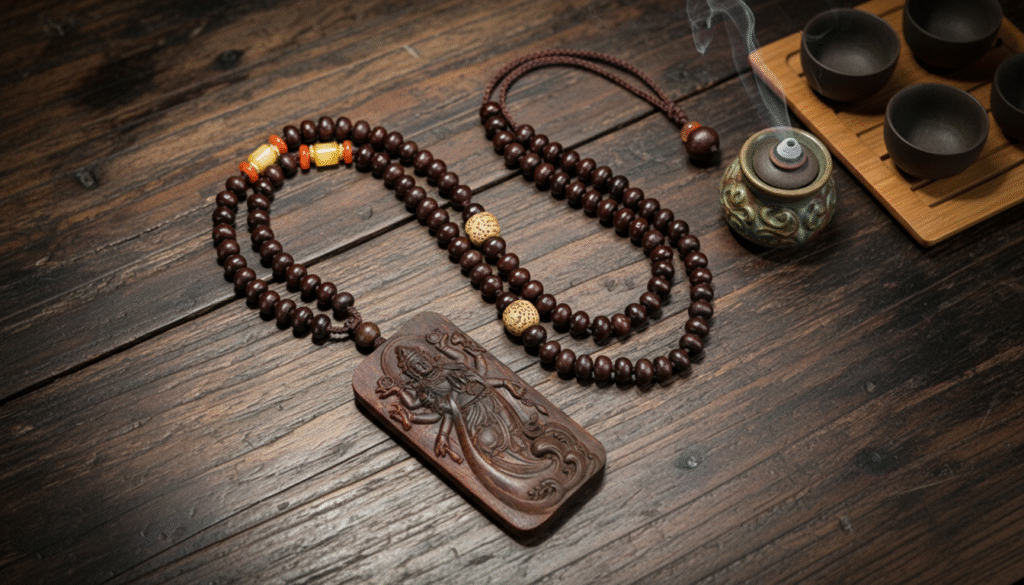 Visual: A pair of hands marked by time (the expert’s hands) gently cupping the pendant. The palm’s warmth slowly heats the Agarwood.