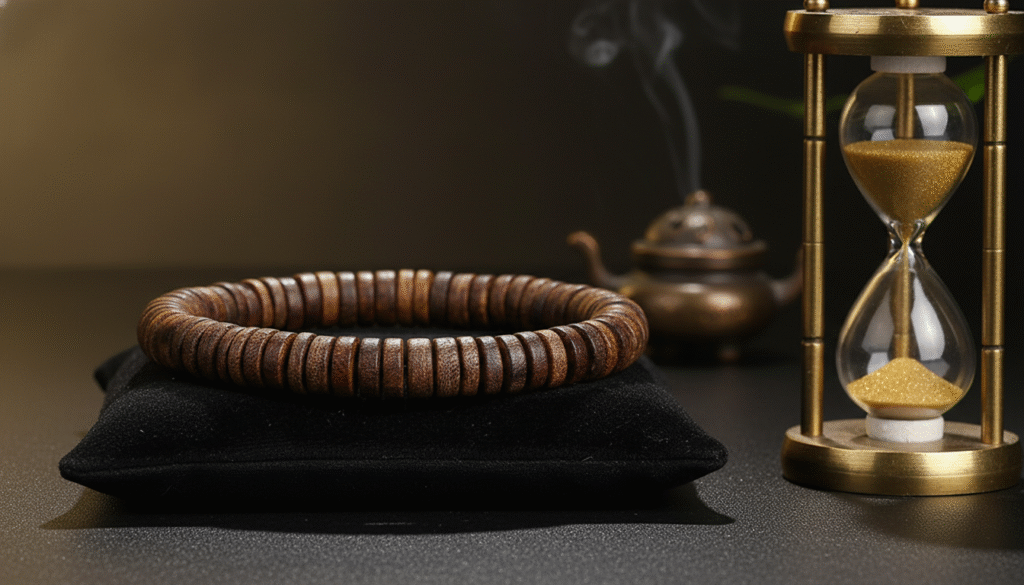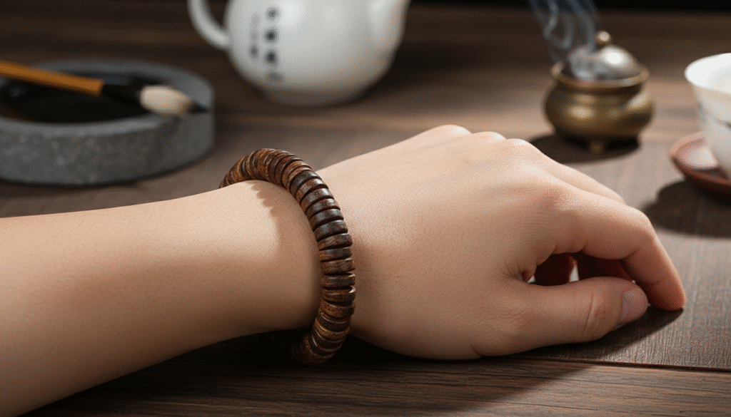 A. This bracelet combines the three most charming notes of Chinese Kinam: Cool, Sweet, and Milky. The initial scent is a piercing cool sensation; when heated by body temperature, it explodes with a rich orchid honey sweetness; the base note is a warm, thick milky fragrance. This layering and longevity are characteristics of ‘National Fragrance’ that ordinary agarwood cannot match.