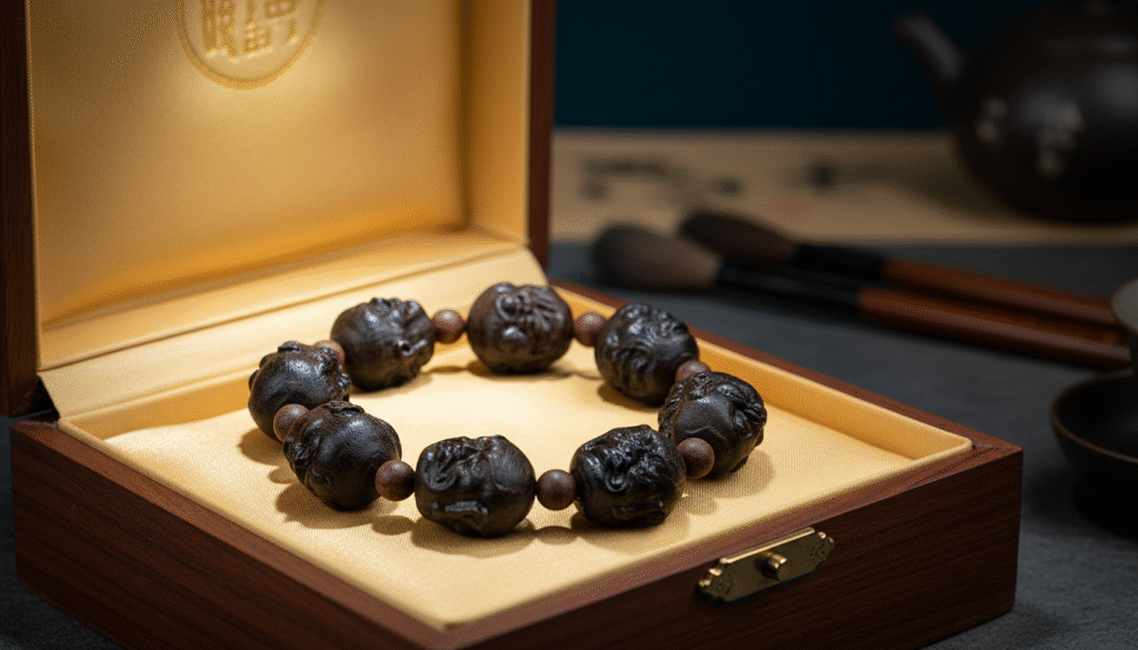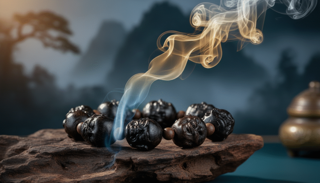 If the ‘Black Lacquer’ look is the body, the scent is the soul of Chinese Kynam. It stands at the pyramid’s peak because of its explosive and penetrating aroma. Wearing this bracelet, you don’t even need to bring it close. The initial note is a ‘coolness’ that strikes the crown of the head, carrying the crispness of the Wuzhi Mountain rainforest. As body heat warms the beads, a middle note of rich honeyed nectar explodes—sweet but not cloying, with hints of ripe fruit. The base note is a blend of thick medicinal incense and creaminess, bringing a meditative Zen peace. This multi-layered and incredibly persistent fragrance is a natural miracle no perfume can mimic, allowing you to build your own quiet sanctuary in a noisy city.