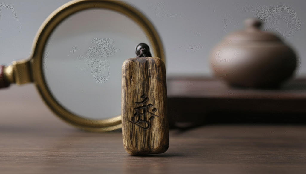The old farmer told me: ‘Old Chen, I couldn’t bear to cut this; it is the flesh grown by an old tree to heal its own wounds.’ Therefore, we decided to fully follow its natural form. Every indentation on this free-form piece is a trace of the agarwood tree’s self-healing after wind damage, lightning strikes, or insect bites years ago. We only commissioned a Suzhou master to carve a few ancient-style characters at the flattest ‘air gate’ area. This is not just artistic white space, but a reverence for nature. Wearing it, you don’t feel artificial smoothness, but the resilience of the mountains and forests. This ‘great artistry appearing simple’ is the ultimate elegance in the eyes of top collectors.
