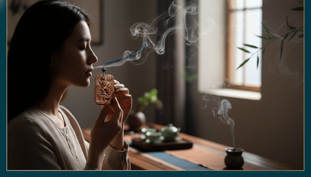 The reason Chinese agarwood sits at the top of the aromatic hierarchy lies in its ‘Yun’ (lingering charm). This piece is a modest gentleman at room temperature, its fragrance reserved; however, once worn against the skin, your body temperature becomes the key to unlocking it. Initially, you are met with a pure orchid scent from a secluded valley, instantly clearing any nasal congestion. This is followed by a sweetness akin to spring wild honey, making the mouth water. The most remarkable part is the finish: as the sweetness fades, a ‘cool sensation’ rises straight to the throat, like mint, instantly clearing the mind. This penetrating layering is a height that Xingzhou (Star Region) agarwood can never reach. In a restless afternoon, a light sniff provides a moment of tranquility that no amount of money can buy.