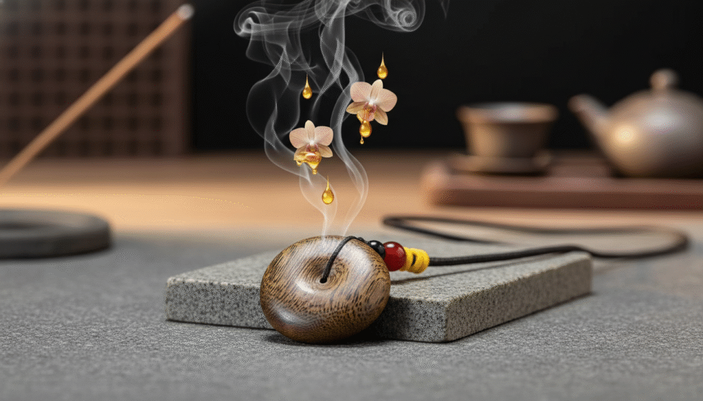 Ancient fragrance manuals often mention the nobility of ‘National Fragrance’ (Guo Xiang), referring to the penetrative power of its aroma. The most dominant feature of this Kinam Safety Buckle is that it requires no heating; a rich aroma can be detected at room temperature. The initial scent is a highly recognizable orchid fragrance followed by a clear, sweet honey note. This ‘honey rhyme’ is elegant and never cloying, as if standing in a mountain forest after rain. Then, the tail notes reveal a cool sensation and a rich, milky creaminess that goes straight to the spirit. This layering is the core characteristic that distinguishes Chinese Kinam from Southeast Asian varieties. Worn on the chest, body heat catalyzes the scent, letting it haunt the wearer intermittently, bringing instant peace in a restless city.