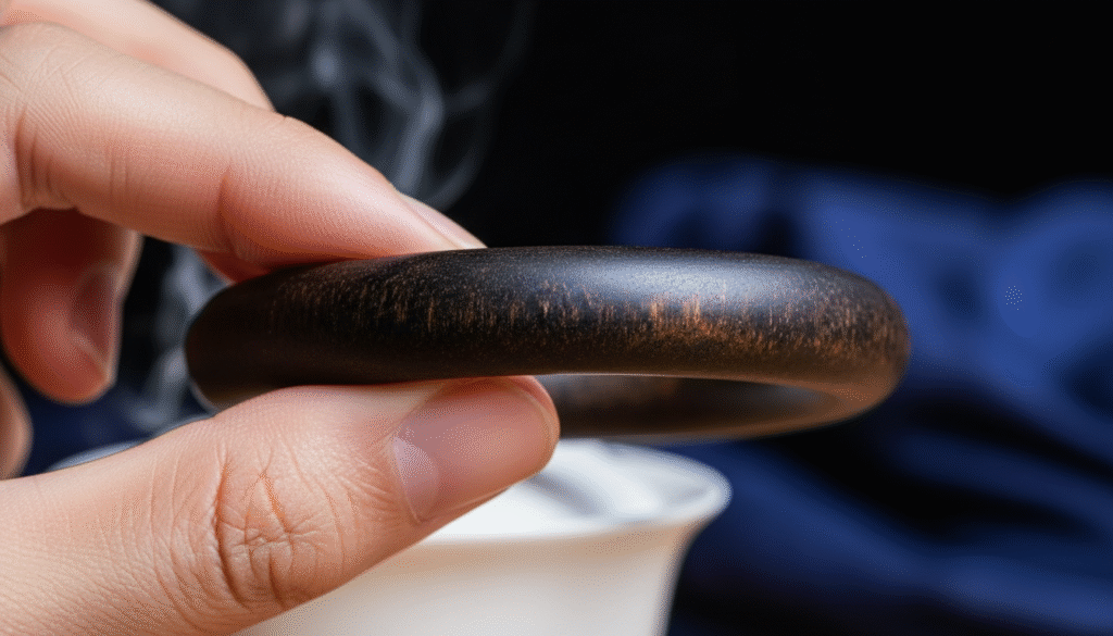 Having been in the agarwood export business for twenty years, I have handled materials by the ton, but to be honest, every time I encounter a “round-bar bangle,” I have to take a closer look and almost instinctively hold my breath. Why? In the agarwood circle, beads are easy to make and plaques allow for some retreat, but this “whole-piece bangle” without splicing or patching is a crazy challenge to nature’s laws of probability. Especially the [Chinese Kinam Agarwood Ancient Material Ladies’ Round Bangle] we are discussing today; it is not just a “survivor” of nature, but a witness to the century-long continuation of Chinese incense culture in the Lingnan mountains. Today, I will not give you hollow chemical formulas. With the physical object in hand, combined with the history of the production area and an expert’s perspective, I will talk about why it is the “ultimate” Qixi gift and why even an old connoisseur like me feels that “every look is one less chance to see it.”