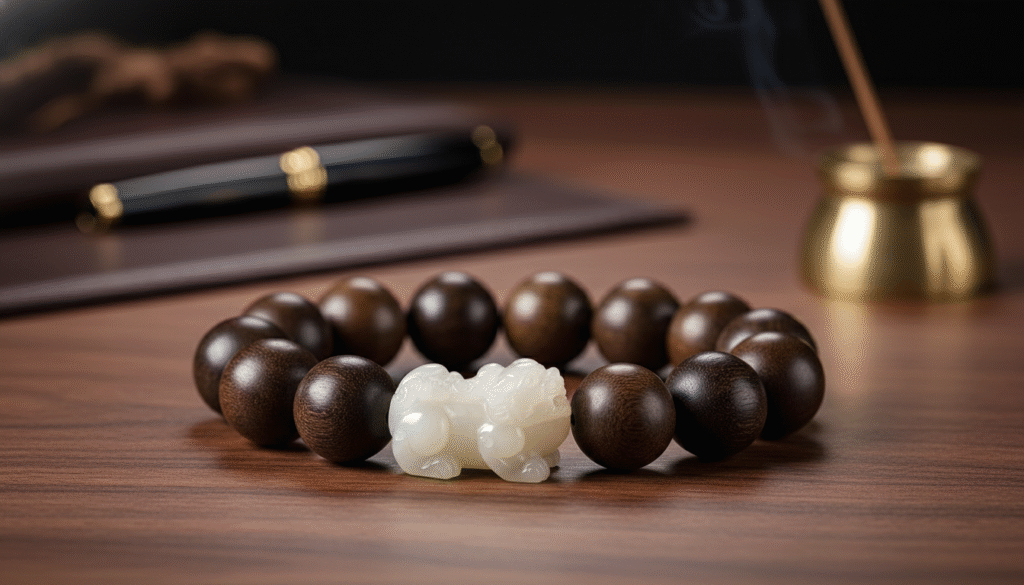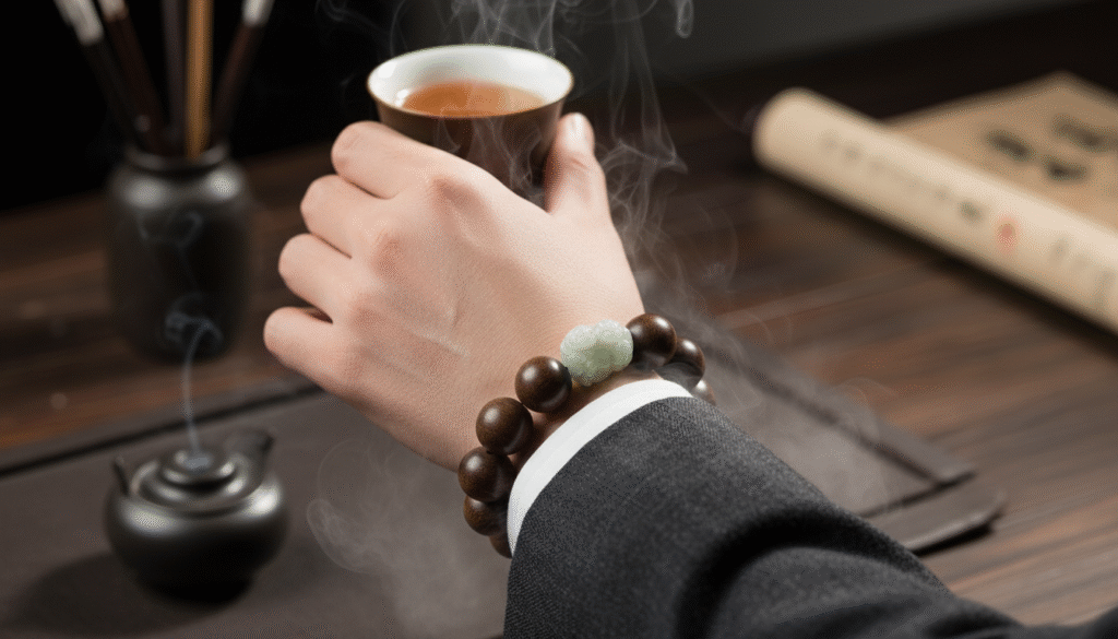 A. Not at all. 16mm is a large size, but agarwood’s color is low-key and restrained. Paired with the Hetian Jade Pixiu, it looks more elegant. The visual impact is “steadfast” rather than “flashy,” making it perfect for men with a wrist circumference over 17cm to highlight leadership qualities.
