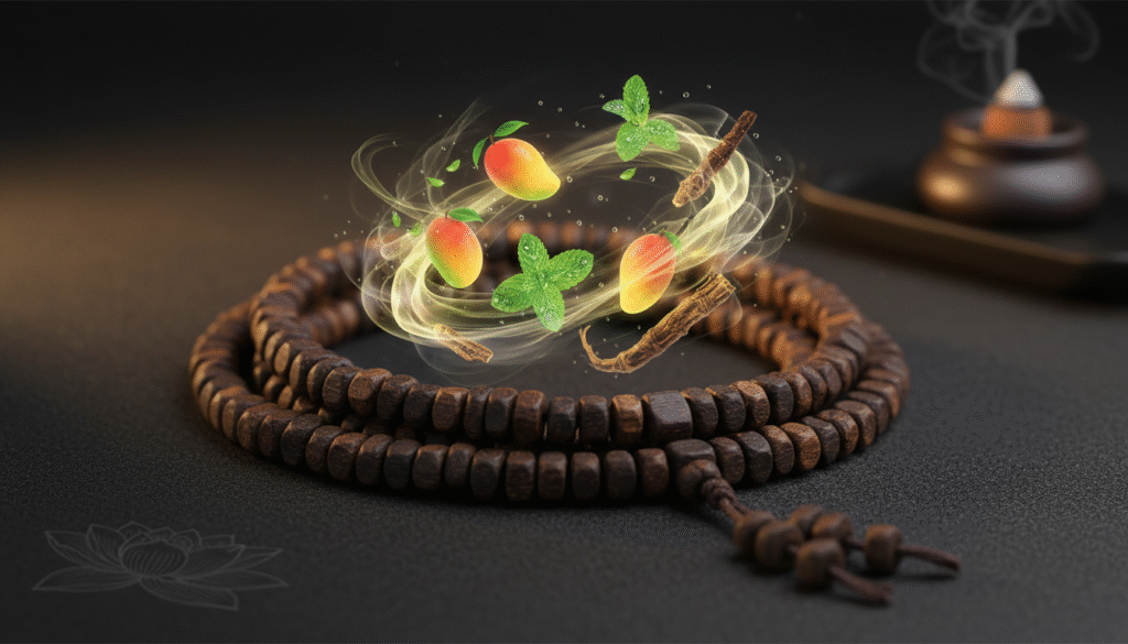 The reason Guangdong Green Kynam became a legend lies in its irreplicable olfactory power. Wearing this 108-bead strand, even a slight increase in body temperature triggers the scent. The initial note is a rich, honeyed fruitiness, much like the sweetness of ripe Lingnan lychees; then, the middle note explodes with a piercing minty coolness. This “coolness” is the soul of Guangdong Green Kynam, making you feel as if you are in the deep forests of Mount Luofu after rain—hitting the crown of your head and washing away worldly dust. Finally, the base note transforms into a mellow frankincense and medicinal aroma. It’s not a single scent, but a fluctuating symphony, recording the genetic code of the land’s vegetation over millennia. As old collectors say: “Once you’ve smelled Green Kynam, all other fragrances seem mundane.”