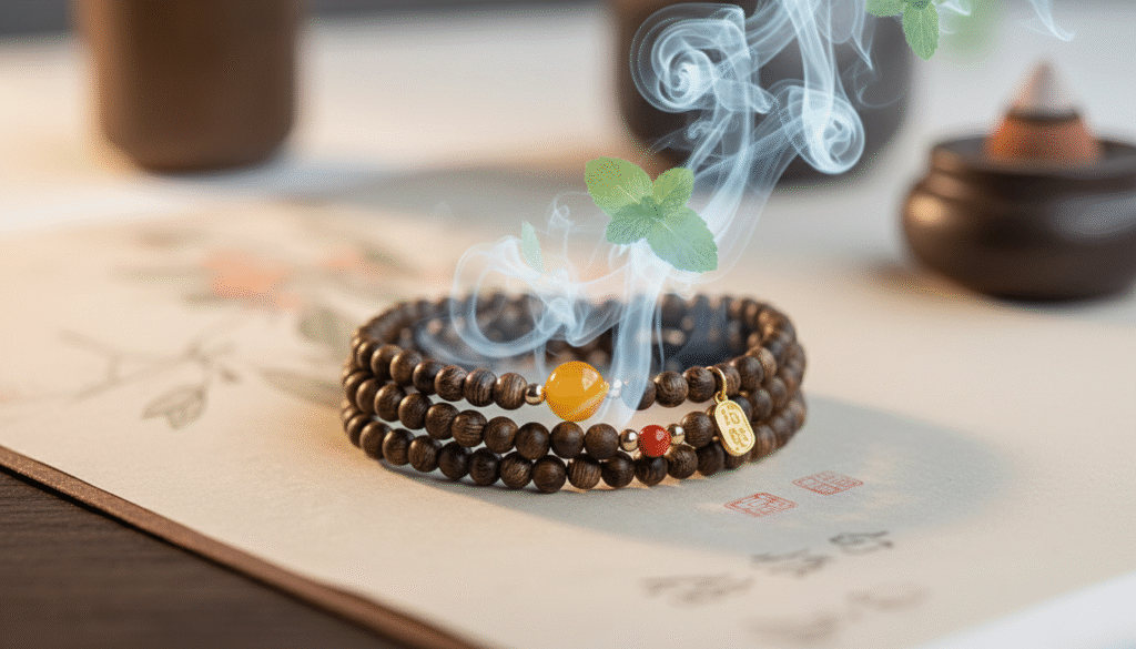 Imagine, in the gaps of a stressful meeting, you lightly lift your wrist. Your body temperature warms the beads, and a crisp, sweet scent instantly explodes at the tip of your nose. It is a wonderful mixture of mint, melon, and wild mountain flowers—not pungent, but capable of instantly penetrating your anxiety. Connoisseurs call this ‘cultivating the heart through fragrance.’ It acts like a silent therapist, pulling you back from the mire of emotions anytime, anywhere.