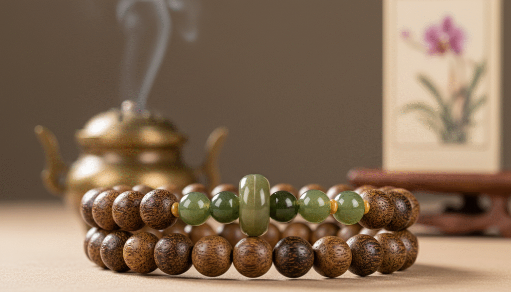 A. Great question. This is the beauty of ‘harmony in diversity.’ We’ve accounted for this: the jade bead’s hole is specially polished, and the resin-rich agarwood is self-lubricating. They will form complementary patinas, fitting better over time rather than wearing down. Wear it with confidence!