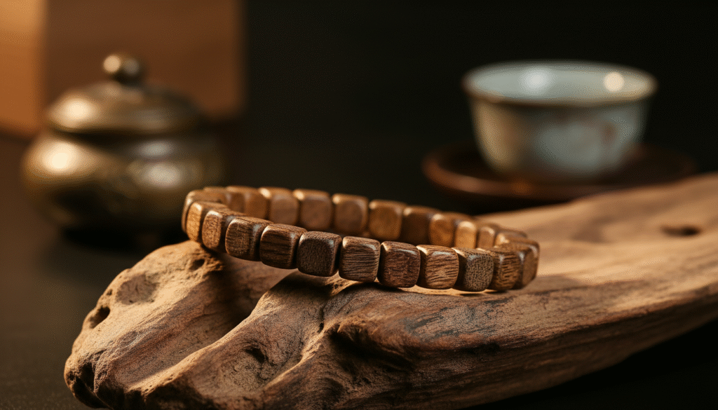 After thirty years in this industry, I have handled countless pieces of agarwood, but honestly, encountering Kynam with the classic “Chinese heritage charm” still makes my heart skip a beat. While organizing my inventory the other day, this square bead (dice bead) bracelet left me dazed for a long time. It reminded me of the days in the early 90s when I was collecting materials in the Jianfengling area of Hainan; back then, local farmers occasionally held these “Black Tiger” resin pieces that were overbearingly powerful. In today’s market, where even Nha Trang material is hard to find, seeing Chinese Kynam with such high oil saturation and such an “extravagant” cut is simply a magnificent luxury. Today, let’s skip the empty technical parameters. I will take you, as if we were in my tea room, to use a magnifying glass and see exactly why this “graduation-level” collectible commands such a high price.