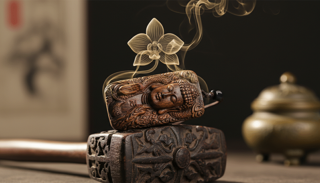 I remember witnessing a sensational spring auction years ago. When an unremarkable-looking piece of ‘rotten wood’ was presented, the noisy hall fell so silent you could hear a pin drop. Experts knew—it was a rare ‘Soil-Buried Mature Knot,’ a miracle of nature where the tree resinifies, naturally falls, and mellows in the earth for centuries. That piece sold for over ten thousand dollars per gram. Today, this ‘Qi Nan-Grade Chinese Agarwood Vairocana’ in my hand is a ‘time capsule’ from the same lineage. It is not just jewelry; it is a survivor from ancient forests to the modern world. In my twenty years of export experience, having handled thousands of pieces, only this jade-like, soul-stirring ‘Mature-Knot’ full-oil treasure is what I dare call a true family heirloom. Come, through this Vairocana, let me show you how deep the world of top-tier Chinese Agarwood truly goes.