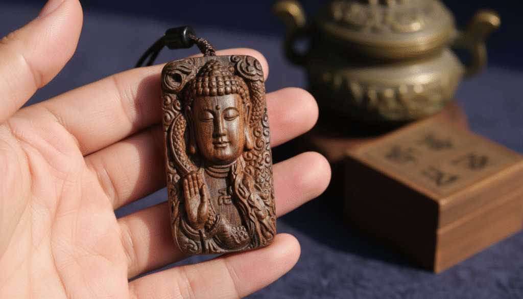 Facing a top-tier old material with a gram price comparable to Qi Nan, every carving stroke is a ‘gamble.’ We invited a master of Suzhou-style carving to perform ‘natural-shape carving.’ Why not cut it into a perfect square? In Chinese agarwood collection logic, preserving weight is preserving value. The carver followed the natural curves of the mature knot, hiding the visage of Vairocana (the guardian Buddha for those born in the Year of the Sheep and Monkey) within the texture. The face is solemn and compassionate, with the hair bun lines perfectly matching the natural oil veins. This ‘30% craftsmanship, 70% material’ approach preserves the aura of nature while adding the blessing of faith. Worn on the chest, it is a Buddha for protection and an ‘invisible asset’ that appreciates over time.