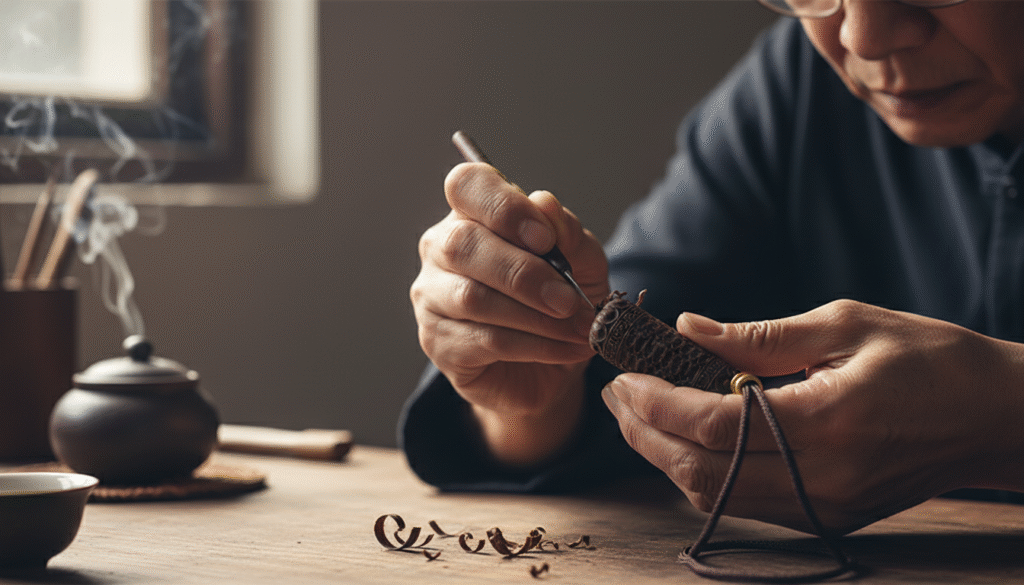 A. ‘Sinking’ means the oil content has reached a physical limit (density greater than water). In cultural narratives, this means the material has undergone the longest period of transformation in nature, absorbing enough essence of heaven and earth. Only wood that ‘sinks upon touching water’ like this pendant deserves the title ‘Diamond of the Woods.’ It is the physical evidence of time’s precipitation.