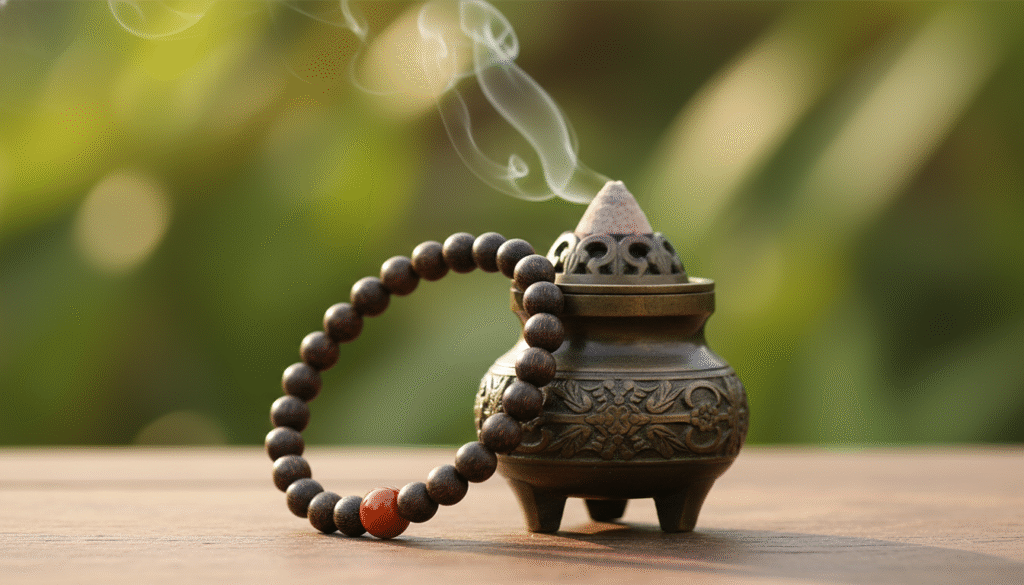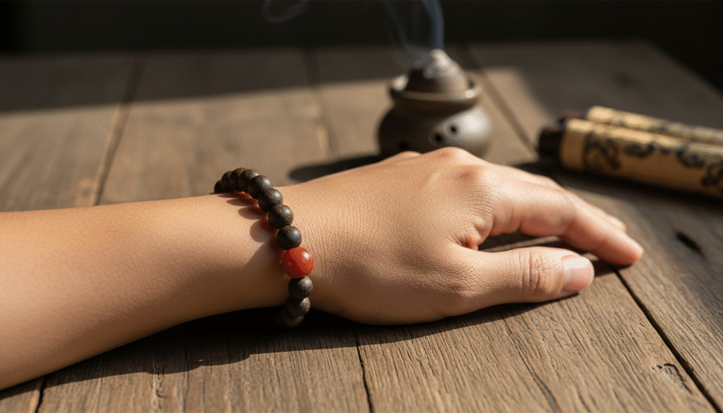 The scent profile of Kalimantan is, in my opinion, both the most “assertive” and the most “gentle.” When you pick up this bracelet, do not rush to inhale deeply—that is for amateurs! First, wave it gently a few inches from your nose. Initially, you will encounter a thick herbal fragrance with the wildness of soil and herbs, as if standing by a swamp in a tropical rainforest. This coolness can instantly clear the mind and sweep away the day’s fatigue. Then, as you settle into a quiet appreciation and the herbal scent fades, the middle and base notes reveal a sweet milky, floral, and fruity rhythm. This is what experts call “the coexistence of sweetness and coolness.” This scent is not the powdery aroma of perfume, but a tranquility that reaches straight to the heart. In the bustling city, a single sniff is like seeing mountains and rivers—it is freedom.