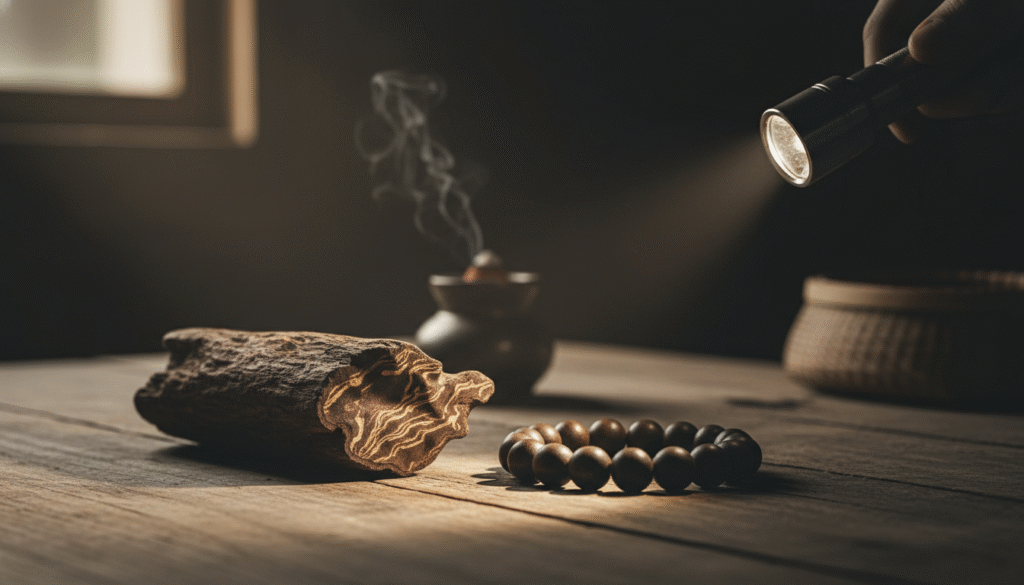 To help collectors understand this ‘Heritage Choice’ and avoid pitfalls, I have summarized this comparison table. These are the hard metrics you can use when searching for authentic pieces: [Oil Structure] Natural: Soft Silk smudge effect, oil in patches, resilient texture. Fake: Rigid black lines, looks unnatural, dry interior (High-pressure injection). [Scent Layers] Natural: Three-stage explosion (Cool/Sweet/Elegant), high penetration. Fake: Single-note chemical sweetness, causes headaches, no evolution. [Taste] Natural: Numbing, spicy, and cool on the tongue. Fake: Bitter or tasteless. [Scarcity] Natural: One-of-a-kind, depleted core origins. Fake: Mass-produced with identical patterns. This 12mm bracelet matches every criterion of a genuine masterpiece. Truth be told, photos cannot capture its true essence. If you have a piece you are unsure about, or want to see high-definition macro videos of this legendary item, click ‘Book a Viewing’ or message ‘Lao Wang’ directly. Even if you don’t buy, we can share our passion for incense—don’t let fakes ruin your spiritual journey.