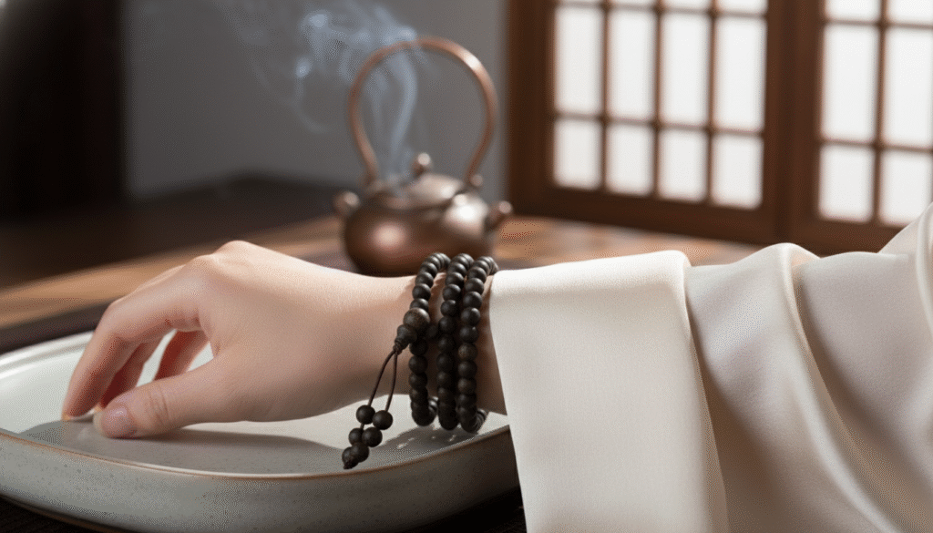 Why do I insist it is the ultimate “spiritual talisman” for female collectors? In the context of agarwood collection, large beads often appear too domineering, while the 5mm (0.5 spec) is the golden size tailored for the wrists of Eastern women. Wrapped four times around a slender wrist, it fits perfectly, offering both the delicacy of small rounds and an elegant, slender aesthetic. The 108-bead format corresponds to the Buddhist meaning of cutting off 108 kinds of troubles. Under the dual pressure of career and life, it is not just an expensive piece of jewelry, but an emotional “sanctuary.” When you are restless, holding this cooling Kynam in your hand and thumbing through the soft, waxy beads is a dialogue with your inner self, returning agitation to peace. This is the true essence of a “spiritual talisman”—using an object to enter the heart and fragrance to nurture virtue.