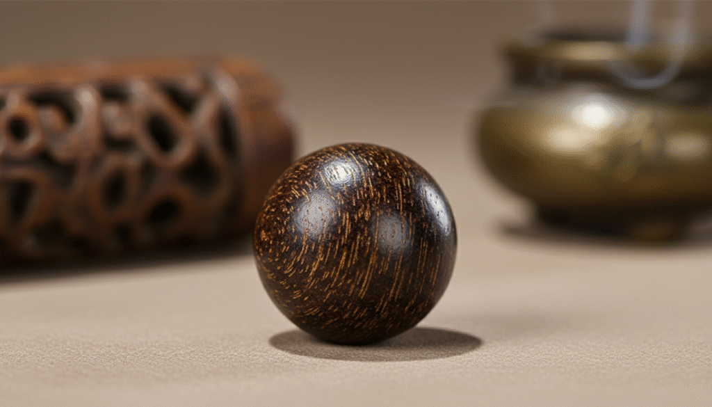 Pick up a magnifying glass, and you will see the most shocking microscopic world of this batch of Chinese Kynam: it’s not just resin lines floating on the surface, but a texture that “overflows” from inside the wood fibers like soft, glutinous paste. This paste-like resin line is the product of the incense tree’s deep entanglement and fermentation with its unique fungal community over decades of wind, rain, thunder, and lightning. Under natural light, the beads present a deep dark brown color with a warm matte finish—the “prelude to patina” unique to old materials. Each bead retains the texture of natural wood grain interwoven with resin lines, without any artificial oily shine, only a heavy, solid feel in the hand. This high-density, sinking-grade quality is the most honest answer given by time—it proves that this material underwent a sufficiently long process of natural mellowing before being harvested. Collectors in the know understand that this “black gold” texture is synonymous with hard currency.