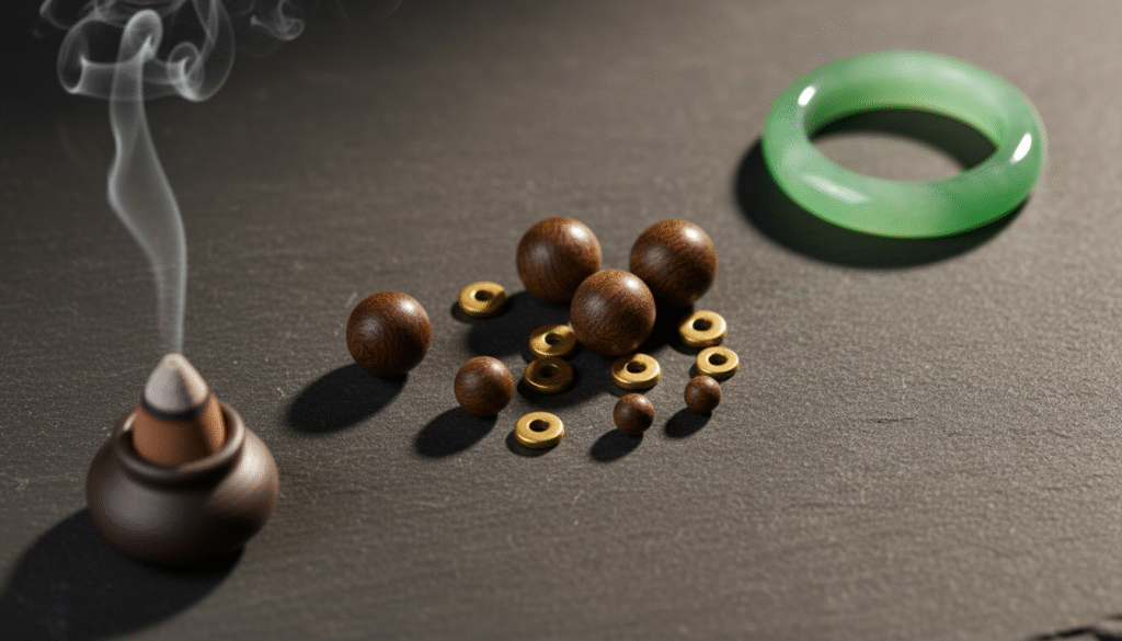 A. This is based on both hardness and aesthetics. The matte texture of heritage gold complements the low-profile oiliness of Kynam, and gold’s malleability prevents scratching the beads. The cool tones of Jadeite (especially Imperial Green) brighten the dark tones of Kynam, creating a visual focal point. However, remember that Jadeite is very hard; when pairing, be sure to add leather pads or coconut shell spacers at the contact points to prevent physical wear. Details determine success.