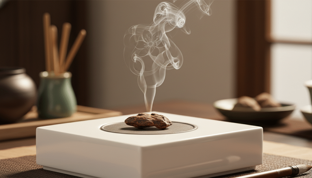 Using these chips is a game of temperature. Never use an open flame; that’s a waste! On an electronic heater, I’ll take you through three realms: 90°C-100°C is the ‘First Encounter’—a crisp coolness from the deep mountains hits the Baihui point. This is the unique ‘transparency’ of Green Kinam, washing away restlessness. 110°C-120°C is the ‘Soul-Entering’ stage—the cool turns warm, and a rich floral honey sweetness explodes, like being in a field of spring flowers. It’s sweet but not cloying, with a long milky finish. If you greedily push to 140°C, you get scorched notes and lose the agility. This gradual scent is the ultimate medicine for sleep and nerves, far beyond chemical fragrances.