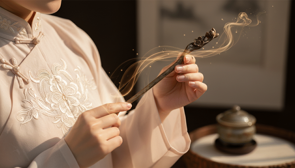 The most miraculous experience of this hairpin is its ‘dialogue’ with your body temperature. Upon first touch, a close sniff reveals the signature ‘watermelon coolness’ of Hainan agarwood, with a hint of crisp moss after rain that instantly calms the mind. After wearing it for half an hour, your hair’s warmth catalyzes the resin’s activity, and that coolness gradually transforms into a rich honey sweetness and a faint orchid fragrance. This scent is penetrating; it doesn’t compete for attention, yet in the clamor of a crowded room, it carves out an inch of serene forcefield just for you.